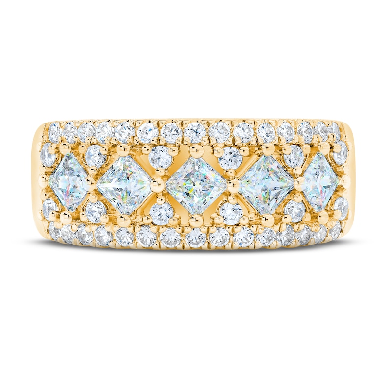 - THE LEO First Light Diamond Princess & Round-Cut Anniversary Ring 1-1/2 ct tw Yellow Gold Plated