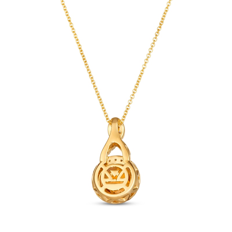 Sublime and stunning, this Le Vian® necklace from the KAY exclusive Chocolate Twist™ collection showcases a glowing round-cut Cinnamon Citrine® wrapped in a halo of Nude Diamonds™. Ribbons of Chocolate Diamonds® and Nude Diamonds™ interweave along the twisted bail for a total diamond weight of 1/3 carat. Fashioned in 14K Honey Gold™, the pendant is suspended from a 19-inch rolo chain that secures with a lobster clasp.
