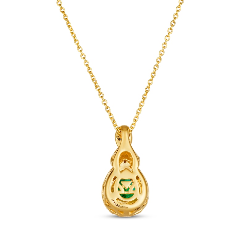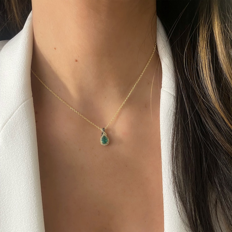 This plush Le Vian® Costa Smeralda Emeralds™ necklace from the KAY exclusive Chocolate Twist™ collection showcases a verdant pear-shaped emerald ensconced in a frame of dazzling round Nude Diamonds™. A mix of round Nude Diamonds™ and Chocolate Diamonds® adorn the elegantly twisted bail, providing a lovely contrast and a total diamond weight of 1/5 carat. The pendant is styled in warm 14K Honey Gold™. The adjustable 19-inch rolo chain fastens securely with a lobster clasp. Le Vian®. Discover the Legend.