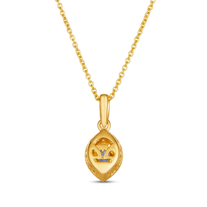 A regal look, this Le Vian® necklace showcases a succulent oval-cut Blueberry Sapphire™ wrapped in a glittering marquise-shaped frame of round Nude Diamonds™. Round Chocolate Diamonds sparkle on the bail for a total diamond weight of 1/8 carat. Styled in warm 14K Honey Gold™, the pendant is suspended from an 19-inch rolo chain that secures with a lobster clasp. Le Vian®. Discover the Legend.
