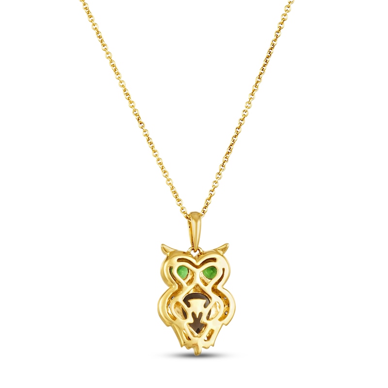 - Le Vian Smoky Quartz & Tsavorite Owl Necklace 1/15 ct tw Diamonds Honey Gold Plated 18"