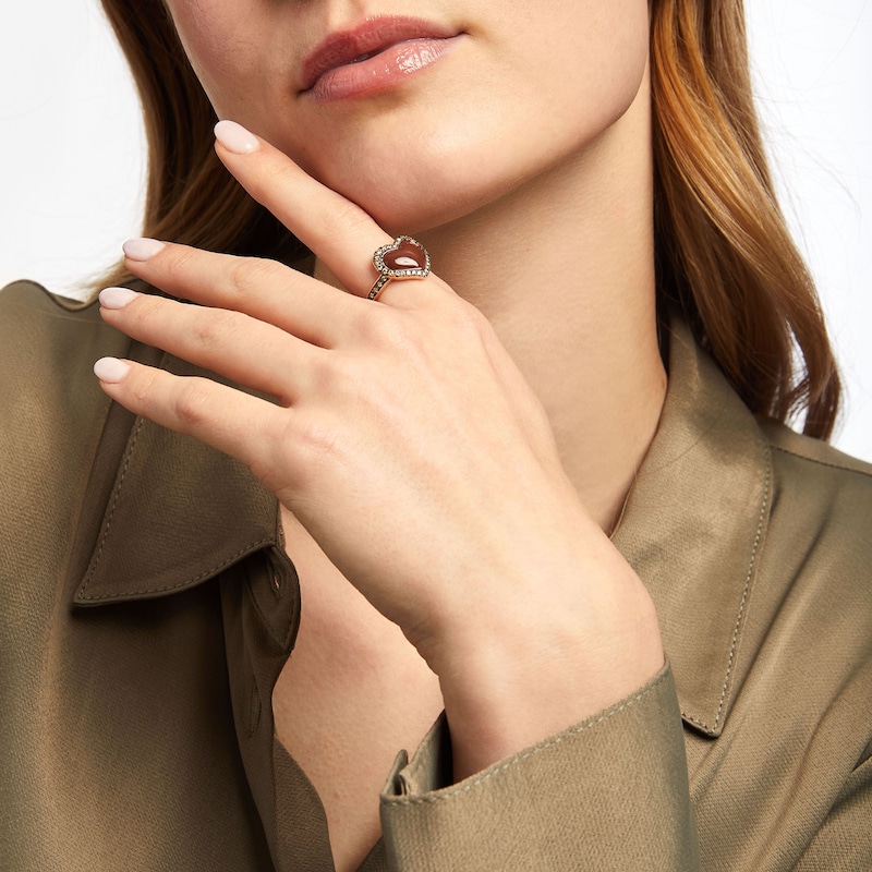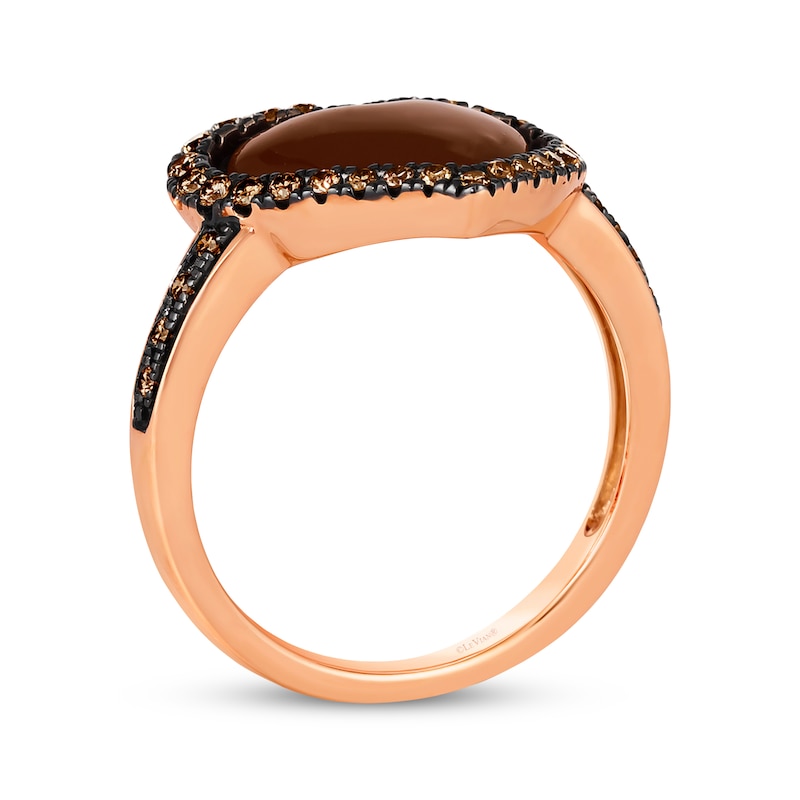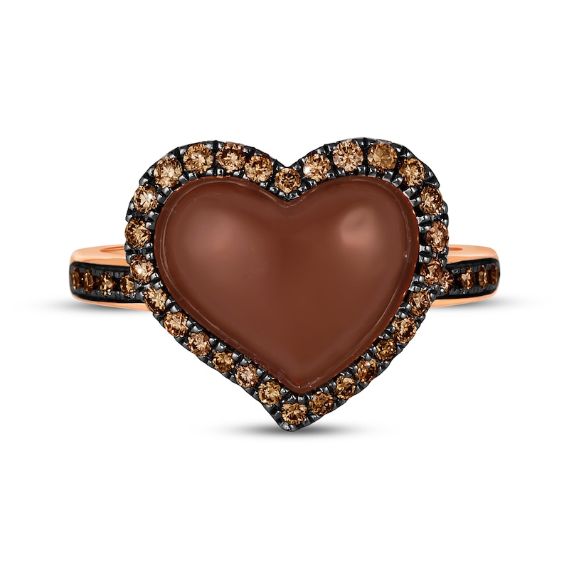 Please note: This ring is available in limited sizes. If you don't see your size here, please visit a store to order your ring. Treat them to delicious Chocolate Diamonds® with this decadent collaboration between GODIVA™ x LE VIAN®. A rich masterpiece, this ring is for true chocolate lovers. A silky enamel heart is traced by sparkling Chocolate Diamonds® styled in black rhodium plate and luscious 14K Strawberry Gold®. The ring has a total diamond weight of 1/3 carat. Le Vian®. Discover the Legend.