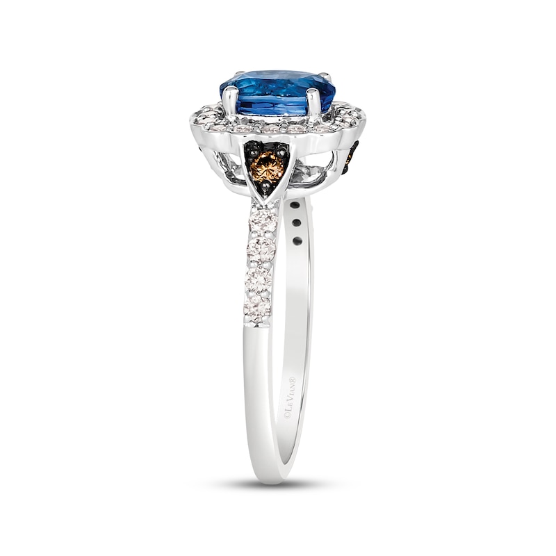 A sweet and sparkling oval-cut Blueberry Sapphire™ glistens at the center of this exceptional Le Vian Creme Brulee® ring. A scalloped frame of Nude Diamonds™ adds eye-catching sparkle, while Chocolate Diamonds® gleam on the flanks. More Nude Diamonds™ adorn the band, which is crafted in sweet 14K Vanilla Gold®, for a total diamond weight of 1/2 carat. Le Vian®. Discover the Legend. This ring is available in limited sizes. If you don't see your size here, please visit a store to order your ring.
