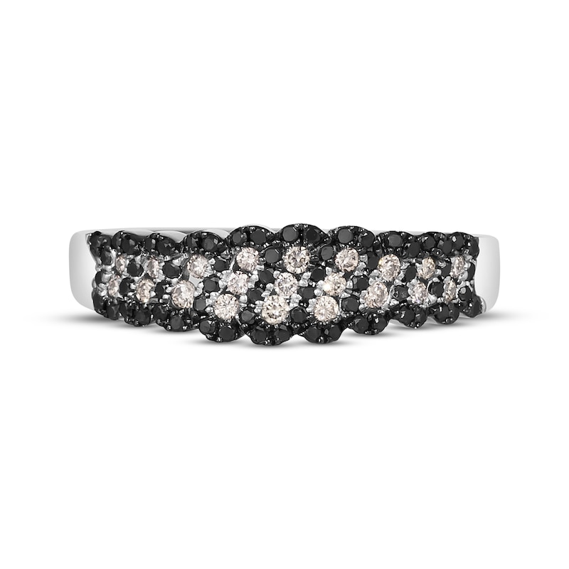 Add a dramatic touch to your look with this ring from Le Vian®. Crafted in 14K Vanilla Gold®, the decorated band shimmers with round-cut Nude Diamonds™ outlined by round-cut Blackberry Diamonds for a total diamond weight of 3/8 carat. Le Vian®. Discover the Legend. This ring is available in limited sizes. If you don't see your size here, please visit a store to order your ring.