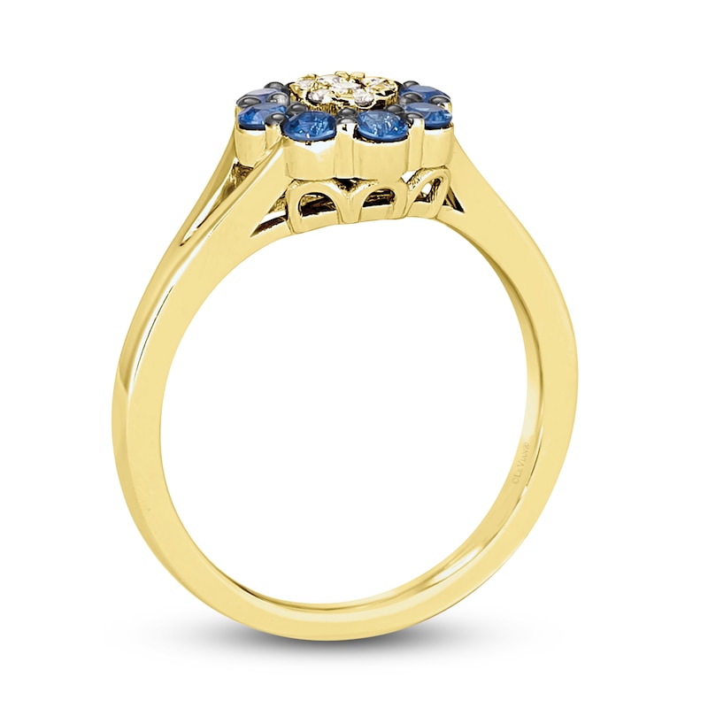 This irresistible ring from Le Vian® features a radiant center of Vanilla Diamonds® embraced by a Blueberry Sapphire™ halo. Crafted in 14K Honey Gold™, the luscious silhouette has a total diamond weight of 1/20 carat. Le Vian®. Discover the Legend. This ring is available in limited sizes. If you don't see your size here, please visit a store to order your ring.