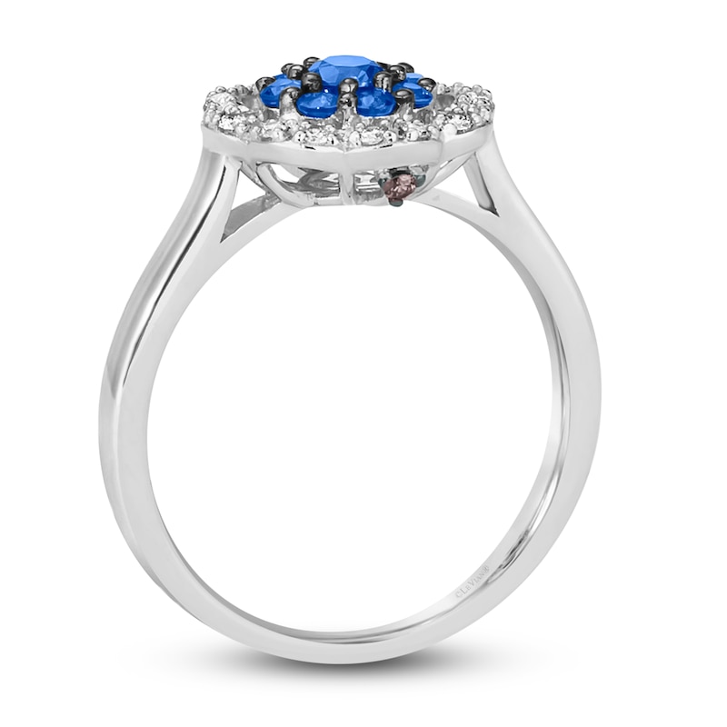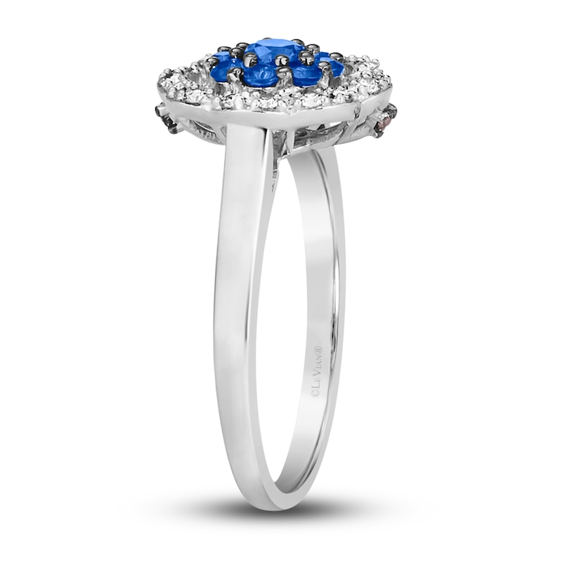 Blueberry Sapphire™ pairs layered amidst Nude Diamonds™ create this scrumptious ring from Le Vian®. Unexpected sprinkles of decadent Chocolate Diamonds® lend a delightful finish. With a total diamond weight of 1/10 carat, the silhouette is crafted in sweet 14K Vanilla Gold®. Le Vian®. Discover the Legend. This ring is available in limited sizes. If you don't see your size here, please visit a store to order your ring.