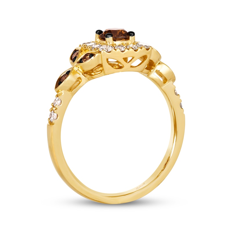 - A 1/3-carat round-cut Chocolate Diamond framed in shimmering Nude Diamonds™ creates the luscious centerpiece