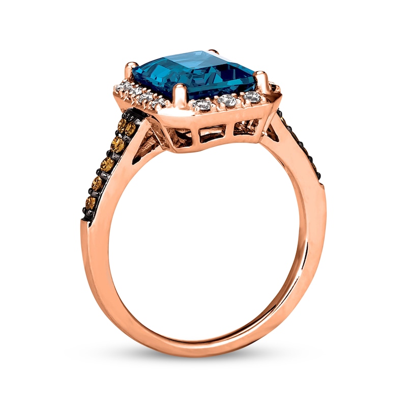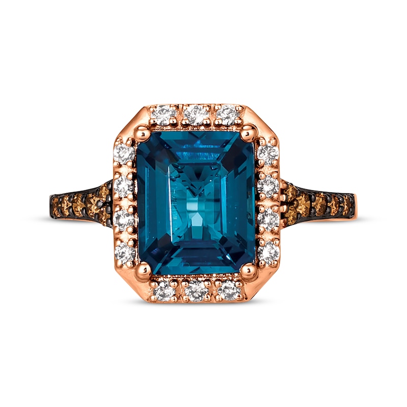 Please note: This ring is available in limited sizes. If you don't see your size here, visit a store to order your ring. A lavish emerald-cut Deep Sea Blue Topaz™ is the focal point of this luxe ring from Le Vian®. Styled in 14K Strawberry Gold®, sparkling Nude Diamonds™ elegantly frame the center. Rich Chocolate Diamonds® shimmer halfway down the band and bring the total diamond weight to 1/3 carat. Le Vian®. Discover the Legend. Available online while supplies last. Previously Owned Treasures are not eligible for in-store pickup. Previously Owned Treasures may only be shipped either to your home address or to an alternate address. Price comparison based on new item pricing.