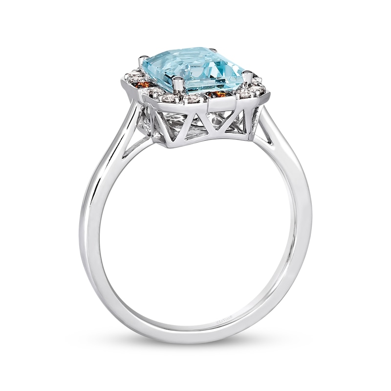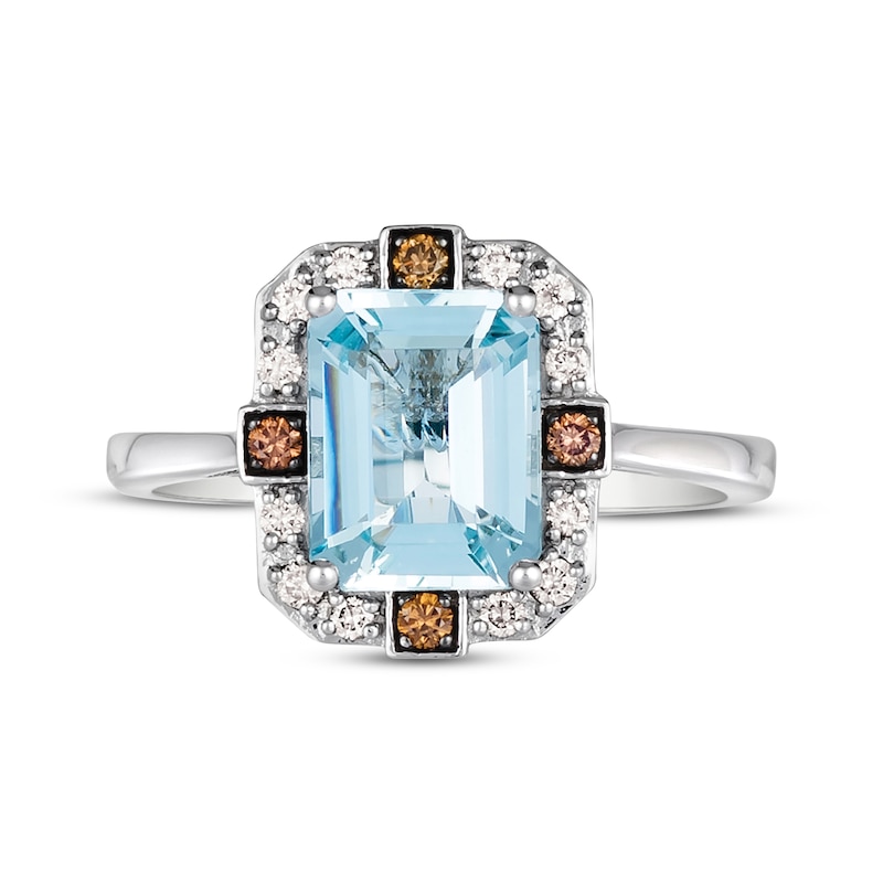 From Le Vian® comes this delicious ring for her. Fashioned in 14K Vanilla Gold®, the emerald-cut Sea Blue Aquamarine® is adorned with a frame of sparkling Nude Diamonds™ and Chocolate Diamonds® for a complementary look. This ring has a total diamond weight of 1/6 carat. Le Vian®. Discover the Legend. Available online while supplies last. Previously Owned Treasures are not eligible for in-store pickup and may only be shipped either to your home address or to an alternate address. Price comparison based on new item pricing.