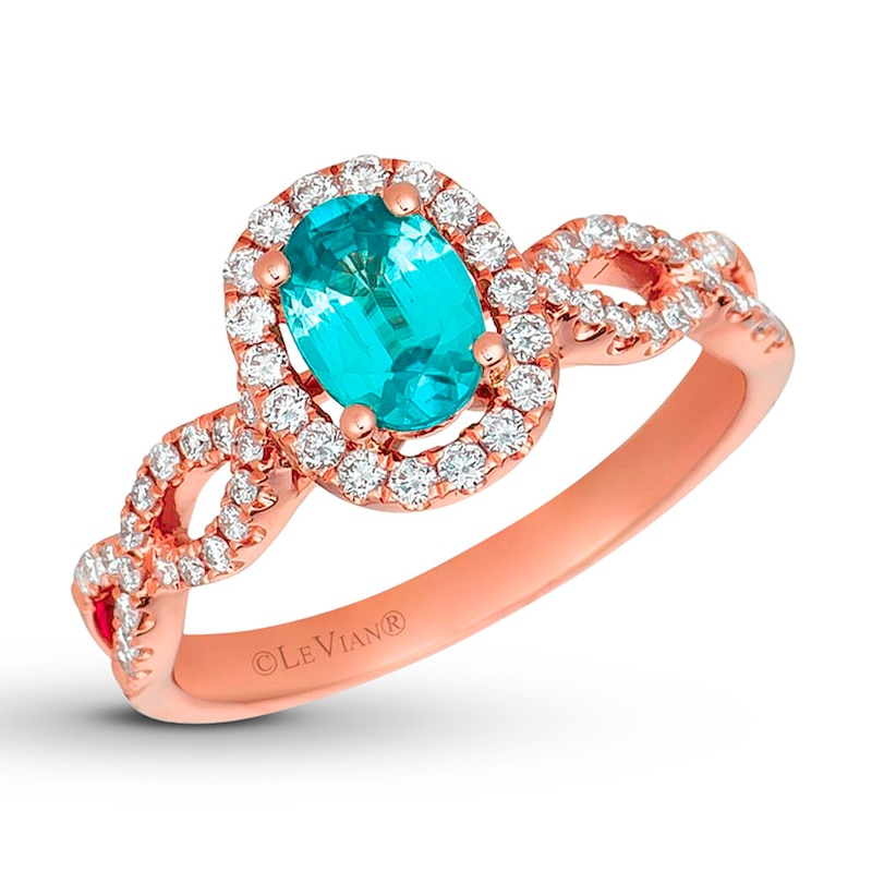 Le Vian Blue Topaz Ring 1/3 ct tw Diamonds Strawberry Gold Plated