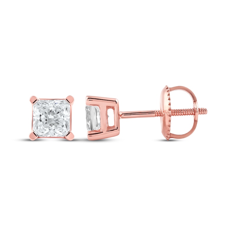- Lab-Created Diamonds by Princess-Cut Solitaire Stud Earrings 3/4 ct tw Rose Gold Plated