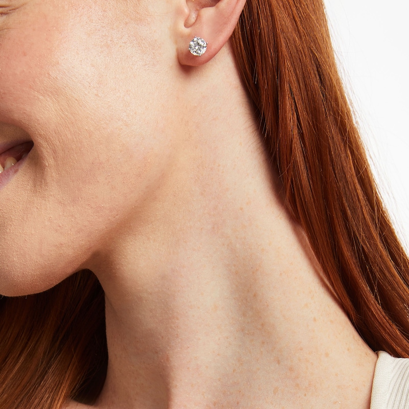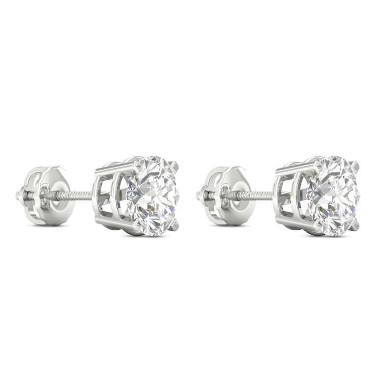 Stunning in their simplicity, these beautiful earrings showcase exquisite round-cut lab-created diamonds. The timeless silhouette is crafted in iconic 14K white gold and safely secures with screw backs. The earrings have a total lab-created diamond weight of 3 carats and are independently certified. From the Lab-Created Diamonds by KAY collection.