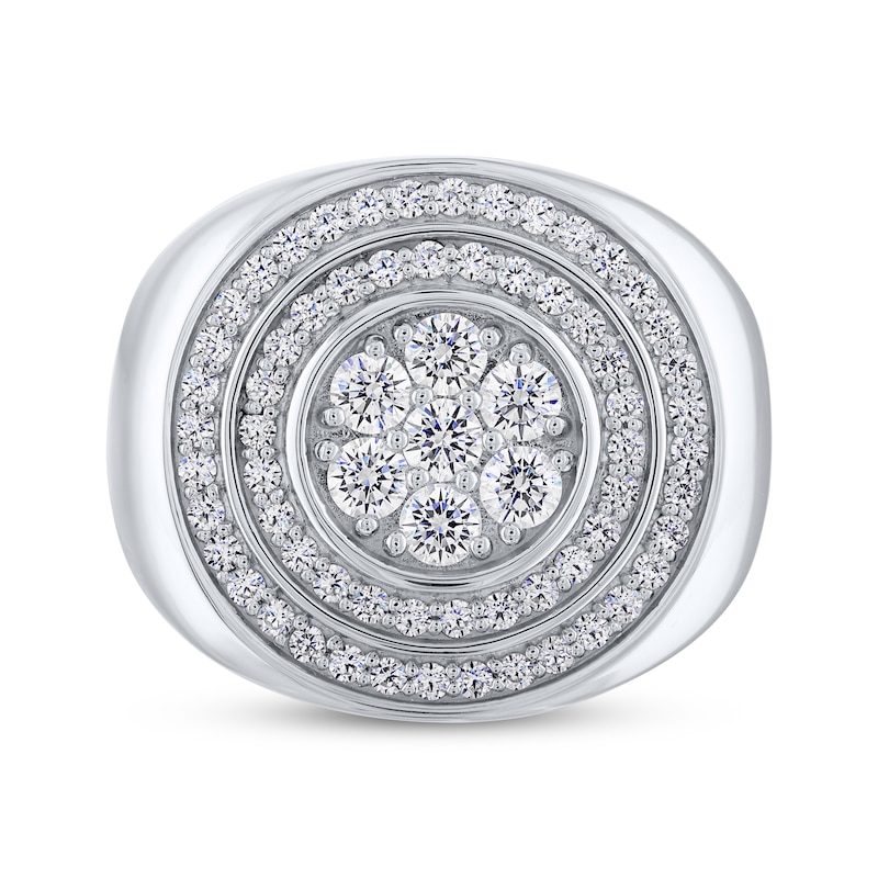 A host of independently-certified round lab-created diamonds adorn the sophisticated circle design of this distinguished ring for him. Styled in iconic 14K white gold, the ring has a total lab-created diamond weight of 2 carats. From the Lab-Created Diamonds by KAY.