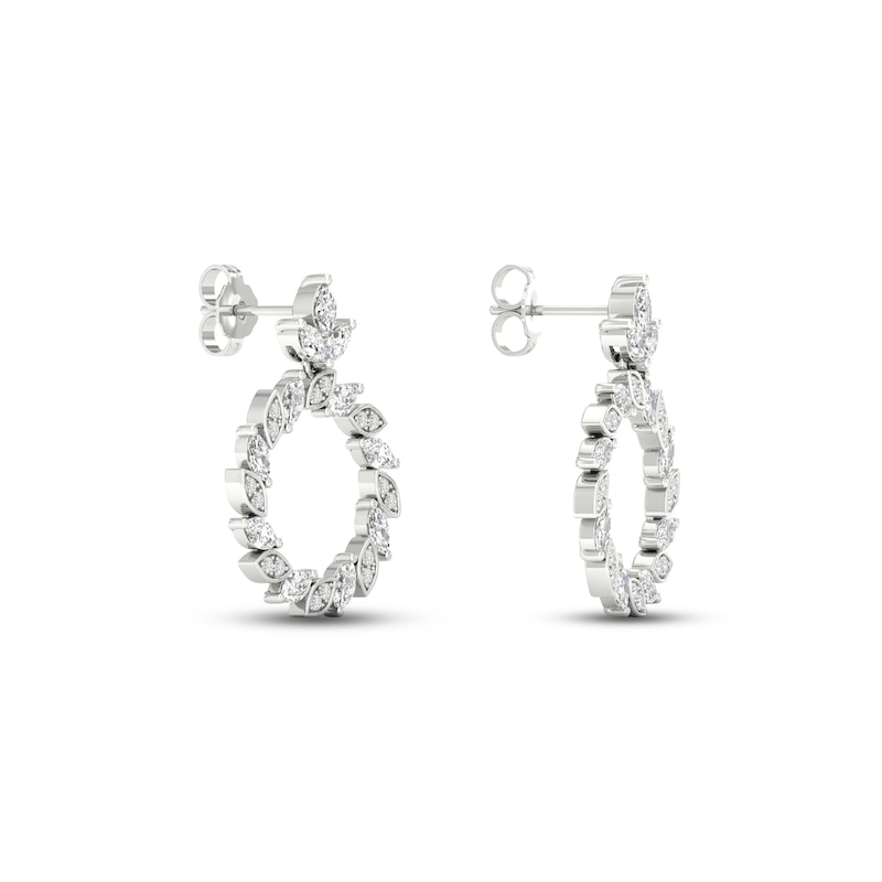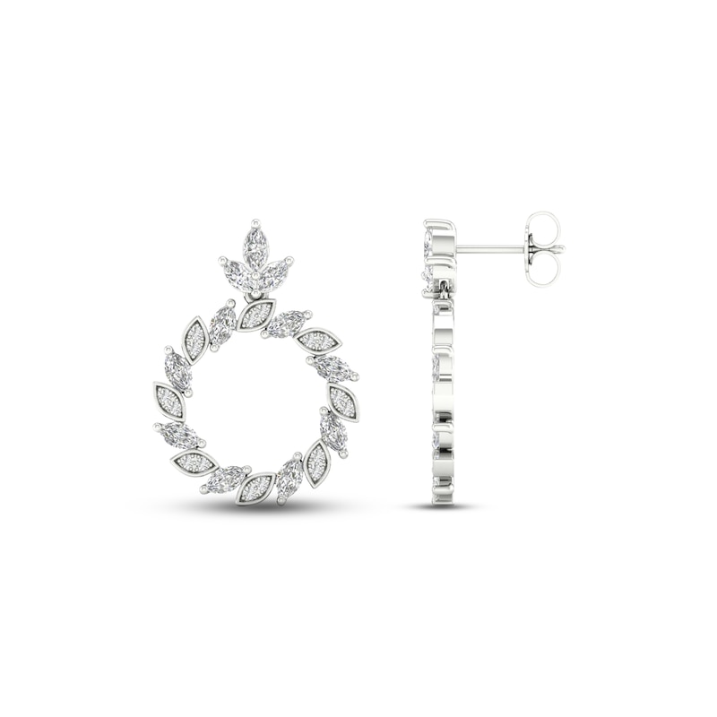 - Diamond Circle Earrings 1-1/2 ct tw Marquise & Round-cut White Gold Plated