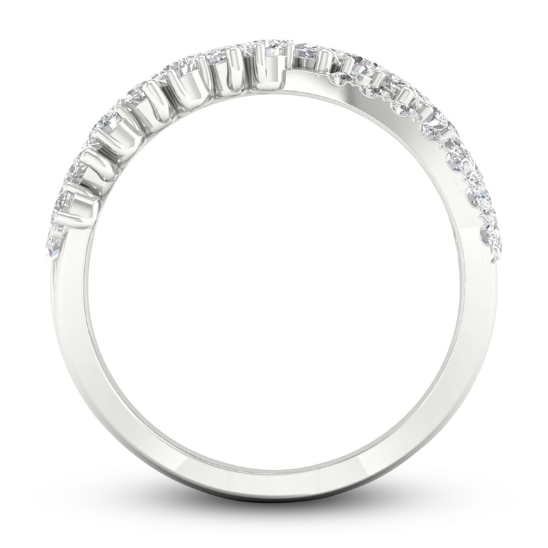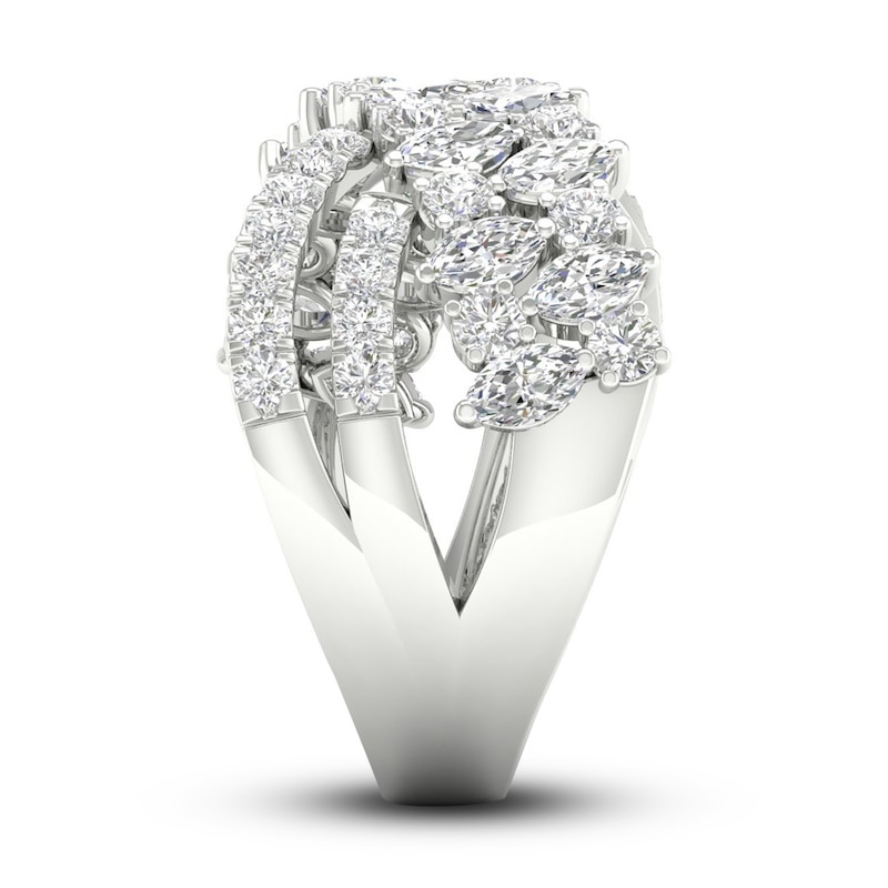 Resplendent with multiple rows of round and marquise-cut diamonds, this beautiful ring features a contemporary crossover design. The ring is crafted in lustrous 14K white gold and has a total diamond weight of 1 1/2 carats.
