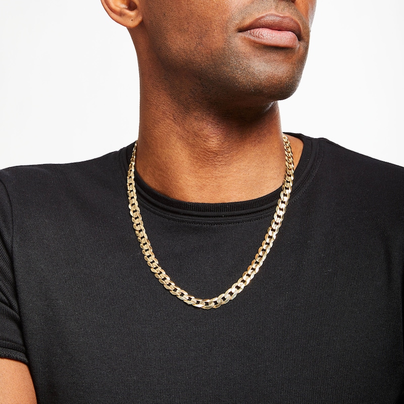 Crafted of 14K yellow gold, this beveled hollow mariner chain necklace is 20 inches in length and fastens with a lobster clasp.