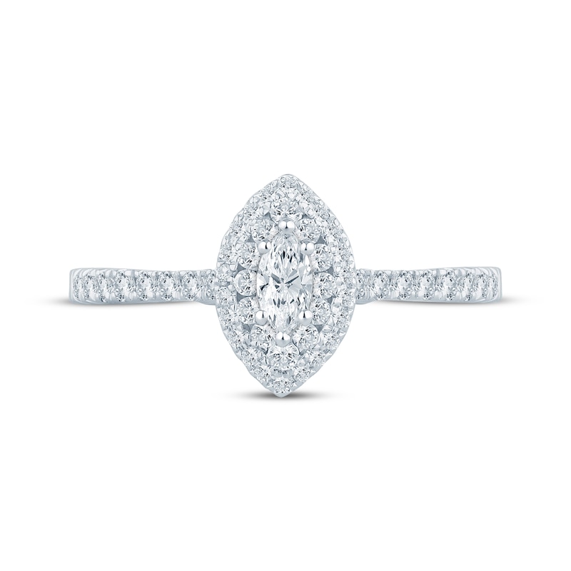 - Marquise-Cut Diamond Double-Halo Engagement Ring 1/2 ct tw White Gold Plated