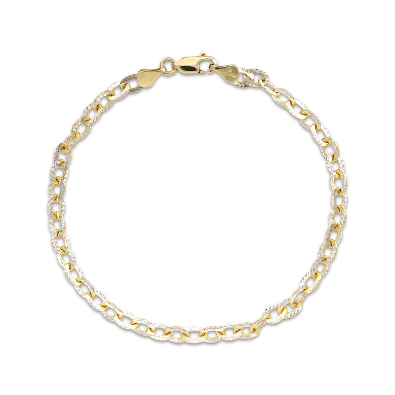 Semi-Solid Textured Curb Chain Bracelet Two-Tone Gold Plated 8.5"