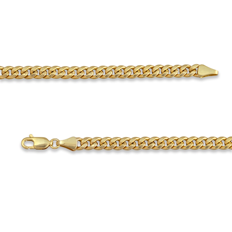 Semi-Solid Cuban Chain Bracelet Yellow Gold Plated 7.5"