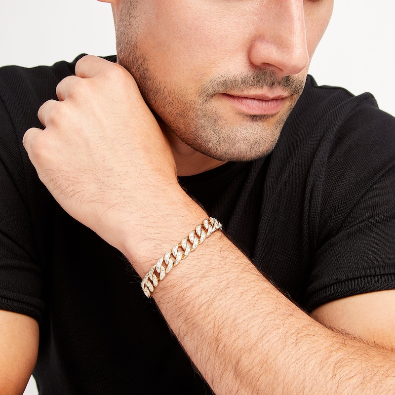 Men's Cuban Curb Chain Bracelet 2 ct tw Diamonds Yellow Gold Plated 8.5"
