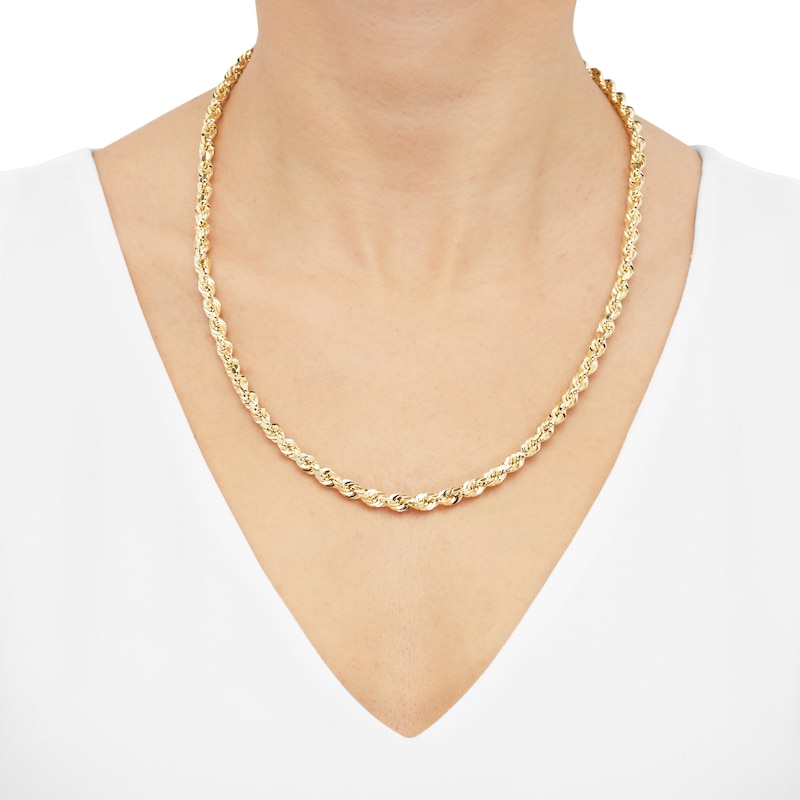 - Semi-Solid Glitter Rope Chain 5.5mm Yellow Gold Plated 22"