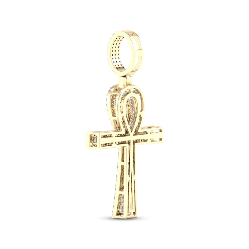 - Men's Baguette & Round-Cut Diamond Ankh Charm 1 ct tw Yellow Gold Plated