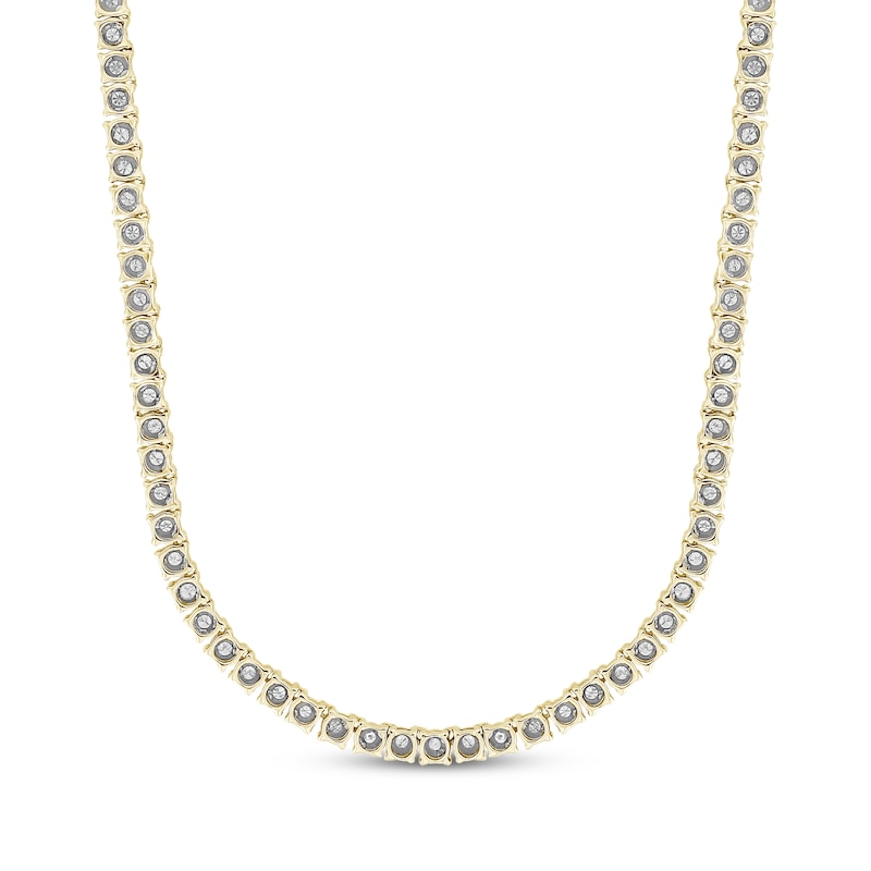 - Men's Diamond Tennis Necklace 3-1/4 ct tw Yellow Gold Plated 22"