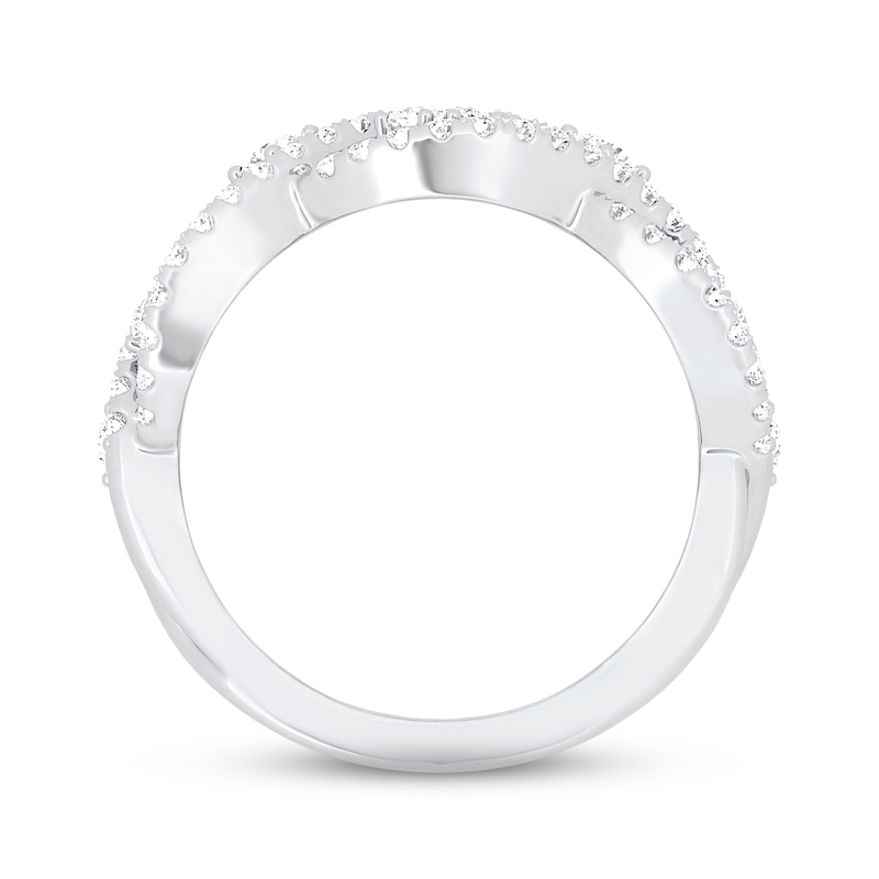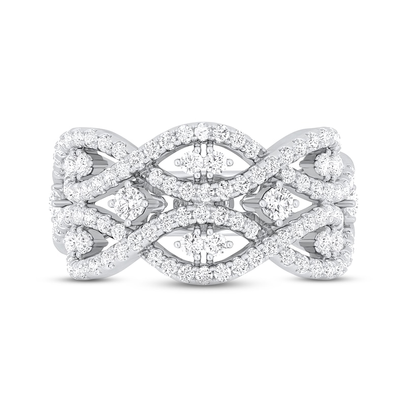 This gorgeous ring for her showcases a woven design of sparkling round-cut, independently-certified lab-created diamonds totaling 1 carat in weight. The ring is set in chic 14K white gold and from the Lab-Created Diamonds by KAY collection. This transaction includes jewelry made with lab-created diamonds. Lab-created diamonds have the same optical, chemical and physical properties as diamonds created by the earth. Merchandise which includes lab-created diamonds is not eligible for trade-in under the Lifetime Diamond Trade-In Policy.