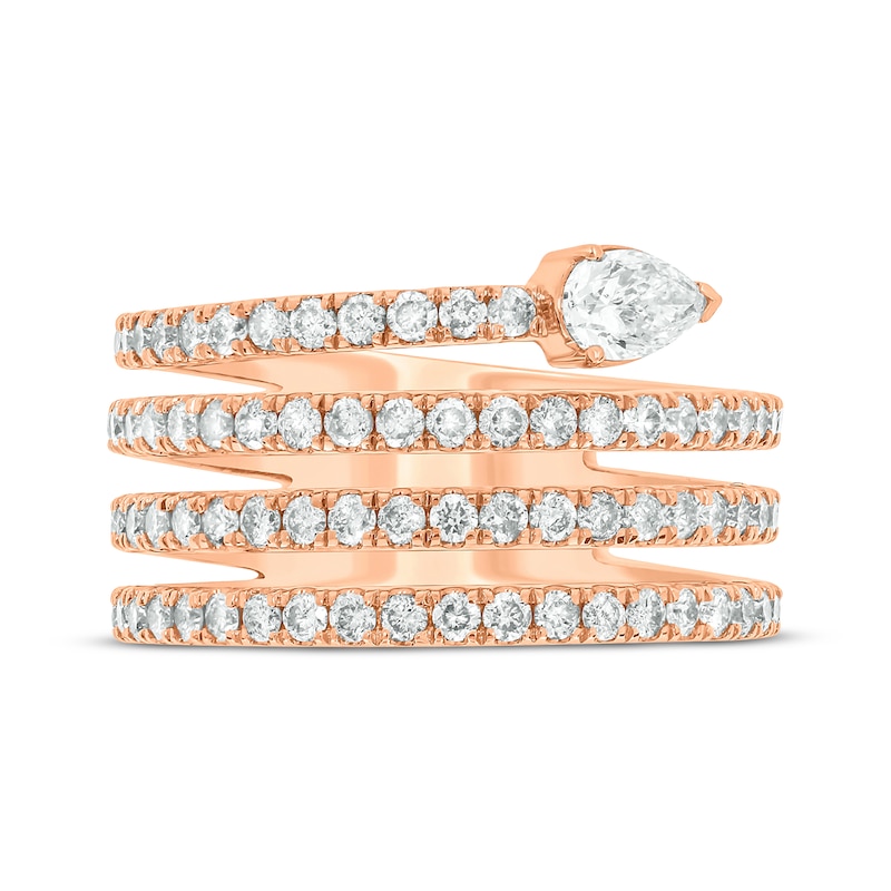 - Pear-Shaped & Round-Cut Diamond Faux Wrap Ring 1-3/8 ct tw Rose Gold Plated