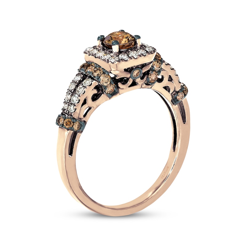 A luscious round Chocolate Diamond is framed by Nude Diamonds™ at the center of this magnificent diamond ring for her from Le Vian®. More rich round Chocolate Diamonds® grace the band. Styled in 14K Strawberry Gold®, the ring features a total diamond weight of 1 carat. Le Vian®. Discover the Legend. Available online while supplies last. Previously Owned Treasures are not eligible for in-store pickup. Previously Owned Treasures may only be shipped either to your home address or to an alternate address. Price comparison based on new item pricing.