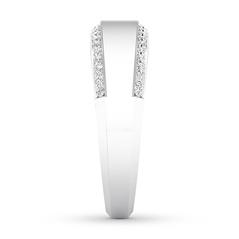 A sleek design with hints of sparkle, this men's wedding band features a polished band edged in round diamonds. The 14K white gold ring has a total diamond weight of 1/3 carat. From the Now & Forever® Collection.