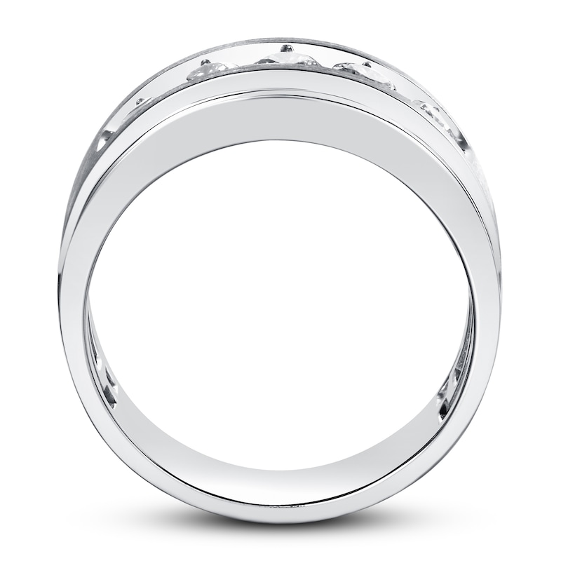 Five brilliant round-cut diamonds line the center of this timeless men's wedding band. The 14K white gold ring features a satin finish and boasts a total diamond weight of 1 carat. From the Now & Forever® collection.
