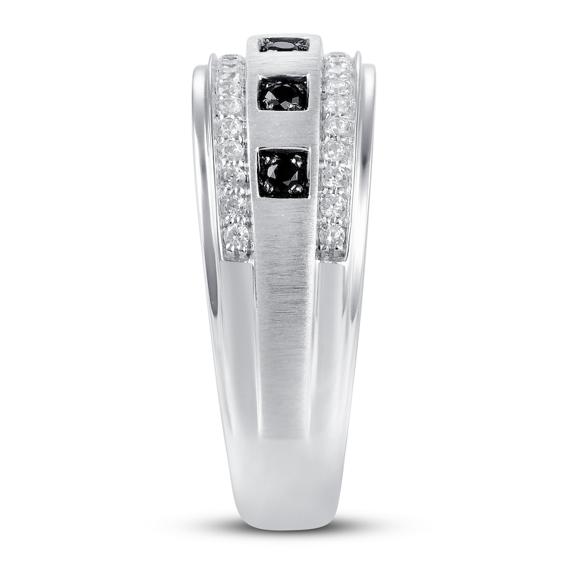 Men's Black & White Diamond Wedding Band 1/2 ct tw Round-cut White Gold Plated