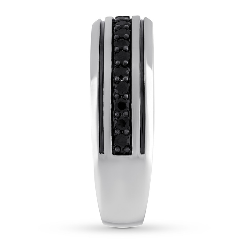 Men's Black Diamond Band 1/2 ct tw Round-cut White Gold Plated