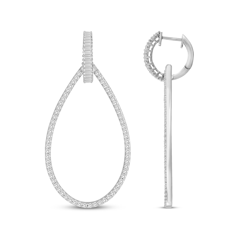 - Baguette & Round-Cut Diamond Teardrop Door Knocker Earrings 1-1/2 ct tw White Gold Plated
