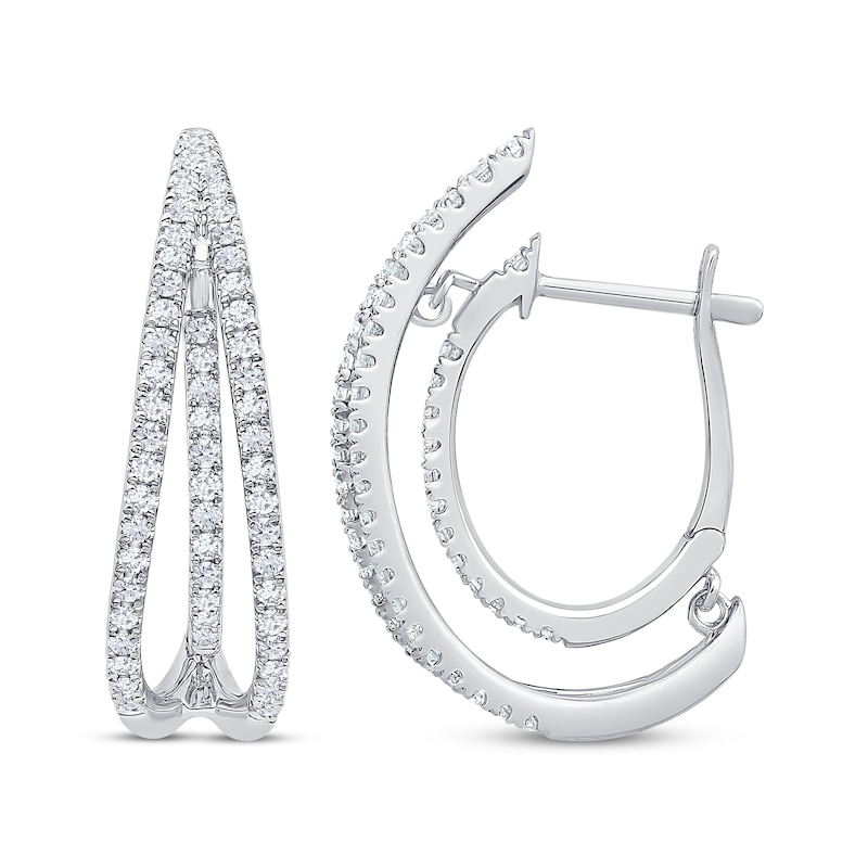 - Unstoppable Love Diamond Three-Row Split Hoop Earrings 1 ct tw White Gold Plated