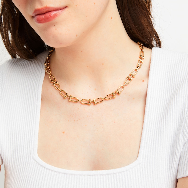- Hollow Link Necklace Yellow Gold Plated 16"