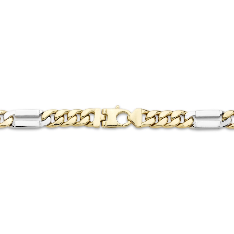 An unforgettable addition to everyday look, this necklace features polished 10K white gold links stationed along a 10K yellow gold semi-solid curb chain with 9mm links. The two-tone necklace measures 22 inches and secures with a lobster clasp. Made in Italy.