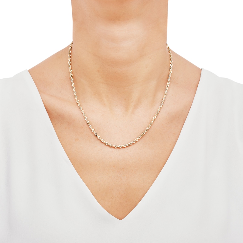 - Solid Glitter Rope Chain Necklace 3mm Yellow Gold Plated 18"