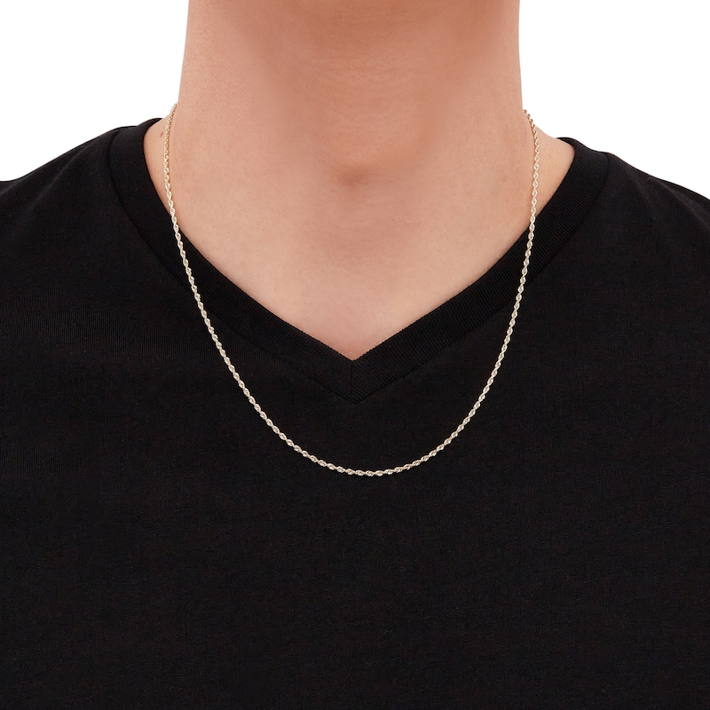 - Solid Glitter Rope Chain Necklace 1.6mm Yellow Gold Plated 20"