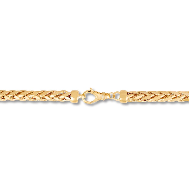 Crafted of 10K yellow gold, this diamond-cut Wheat chain necklace has a shimmery effect. The 24-inch necklace secures with a lobster clasp.