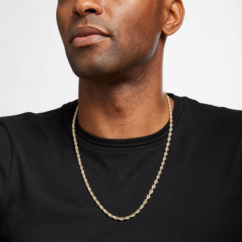 Solid Glitter Rope Chain Necklace 3.8mm Yellow Gold Plated 22"