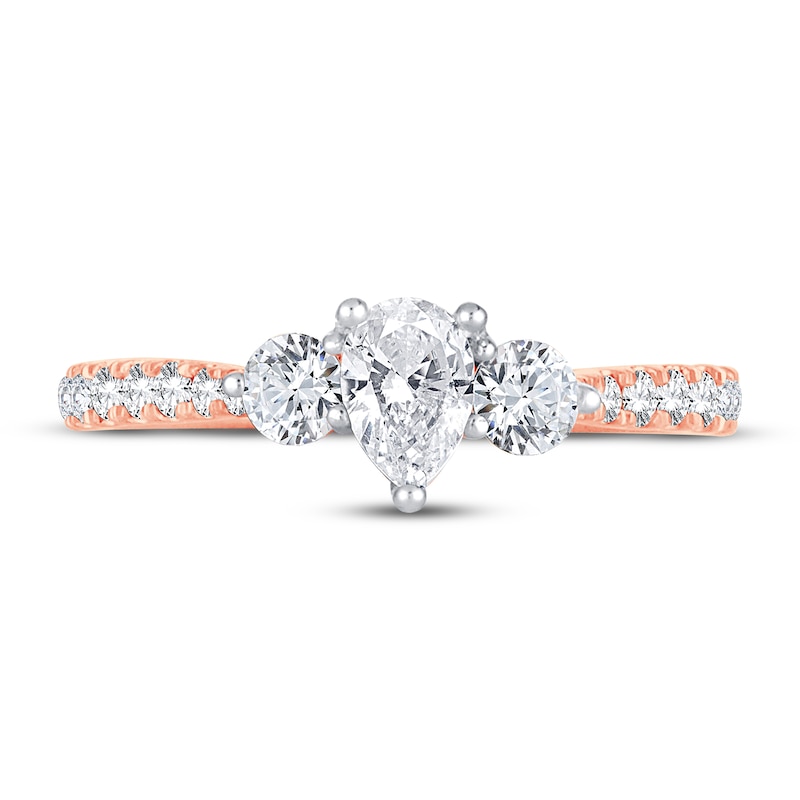 - 3-Stone Diamond Engagement Ring 1 ct tw Pear & Round Rose Gold Plated