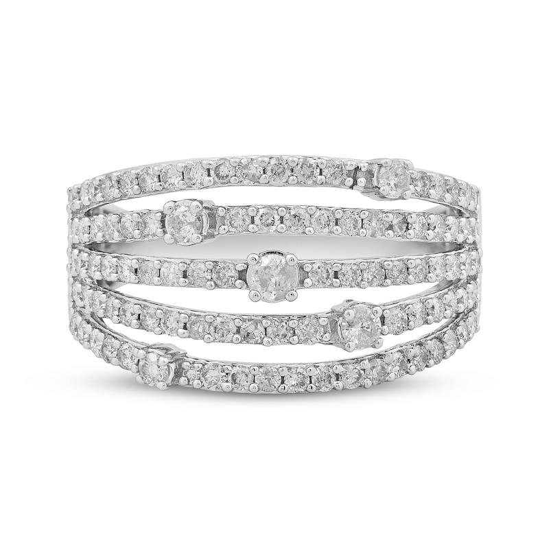 - Diamond Five-Row Ring 1 ct tw White Gold Plated