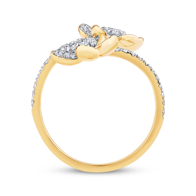 - Diamond Plumeria Flower Bypass Ring 1/2 ct tw Yellow Gold Plated
