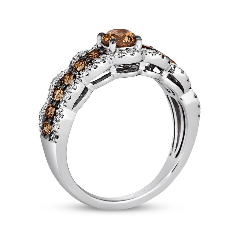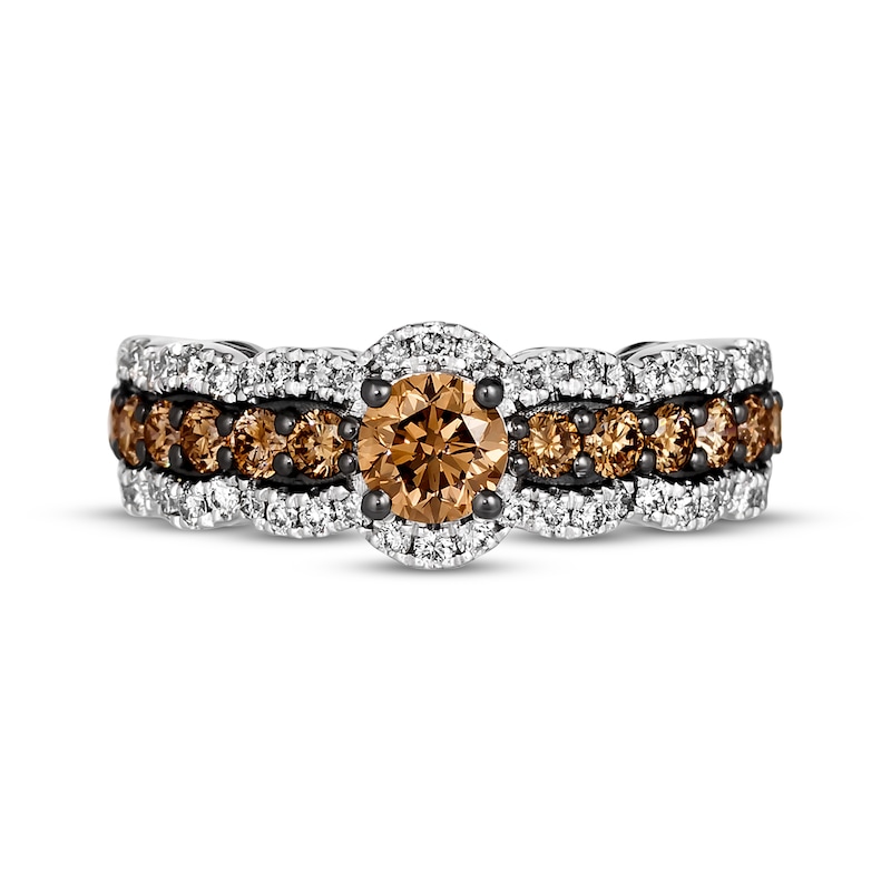 She’ll love the rich look of this Le Vian® ring from the KAY-exclusive Chocolate Waterfall™ collection. Created in 14K Vanilla Gold®, this band showcases a 1/2-carat round-cut Chocolate Diamonds® stone atop a scalloped band of round-cut Chocolate Diamonds® and Nude Diamonds™. This taste-tempting design has a total diamond weight of 1 1/3 carats. Le Vian®. Discover the Legend. This ring is available in limited sizes. If you don't see your size here, please visit a store to order your ring.