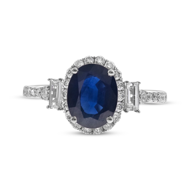- Oval-Cut Blue Sapphire & Diamond Ring 3/4 ct tw White Gold Plated
