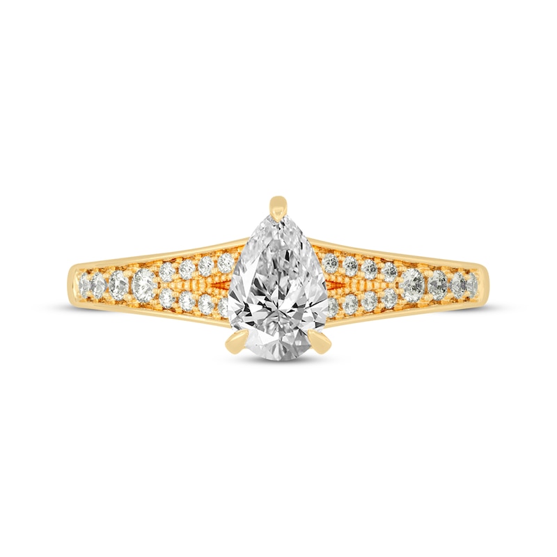 - Pear-Shaped & Round-Cut Split-Shank Engagement Ring 3/4 ct tw Yellow Gold Plated