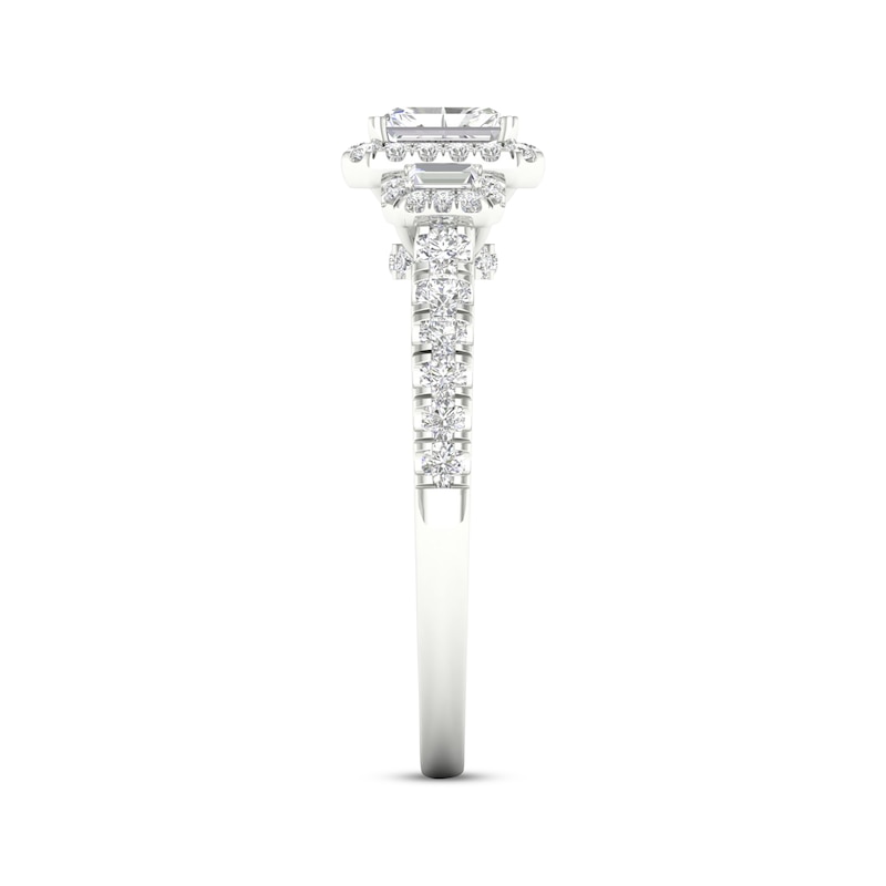 - Radiant, Baguette & Round-Cut Diamond Engagement Ring 7/8 ct tw White Gold Plated