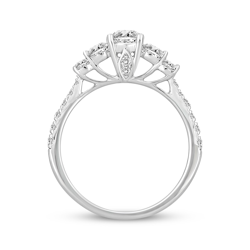 - Round-Cut Diamond Five-Stone Engagement Ring 7/8 ct tw White Gold Plated